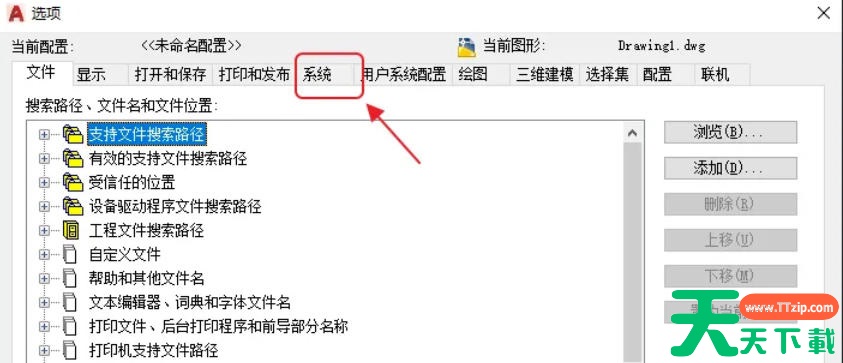 在“选项”对话框中,找到并点击 【系统】 选项卡(位于顶部标签栏)。