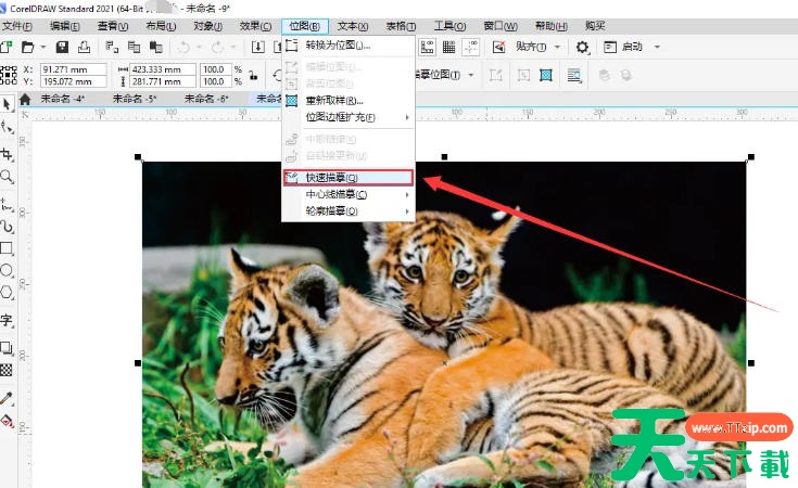 选中图片 → 点击【位图】→【快速描摹】→ 直接生成轮廓(但细节差)。