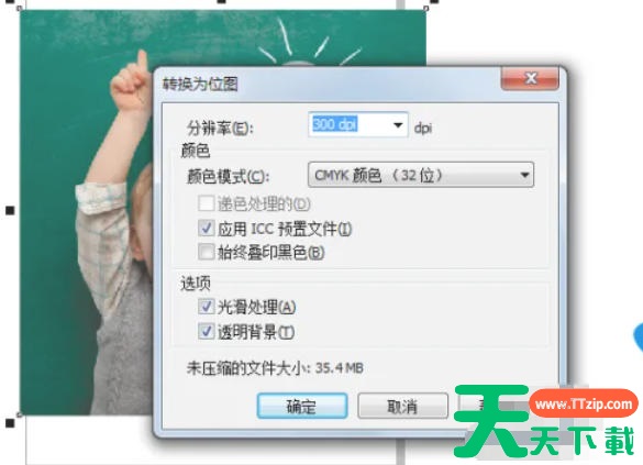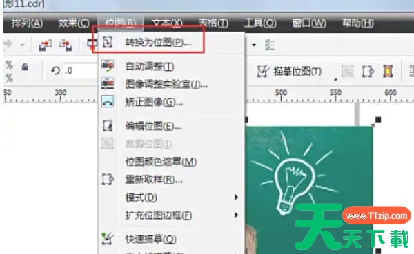 选中图片,点击菜单栏中的“位图”,选择“转换为位图”,在弹出的对话框中单击确定。