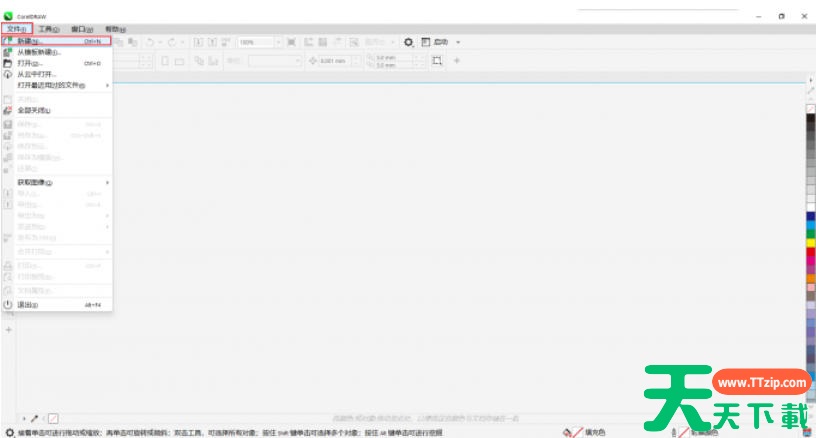 打开CDR软件,点击菜单栏 文件 → 新建(或按快捷键 Ctrl+N)创建空白文档。