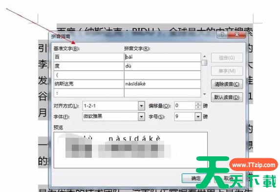 点击“文”字按钮后,会弹出一个对话框,在对话框中可以看到文字与拼音的对照显示。