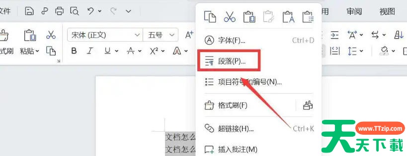 右键点击选中区域,选择 “段落”(或通过顶部菜单栏 “开始” → “段落” 组右下角的小箭头打开)。