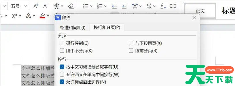 孤行控制:防止段落首行或末行单独出现在一页顶部/底部。
