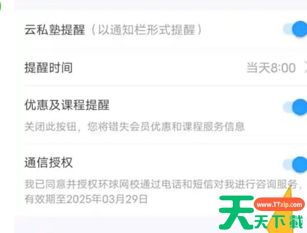 以上就是天天下载Ttzip为您整理的环球网校怎么关闭通信授权以及环球网校关闭通信授权的方法啦,希望能帮到您!