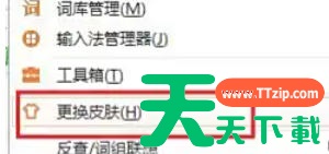 在输入法的状态栏上单击鼠标右键,选择“更换皮肤”选项。