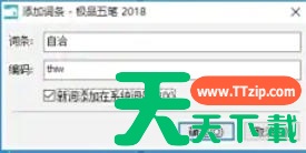 若留空,输入法会自动生成五笔编码(如“thiw”)。