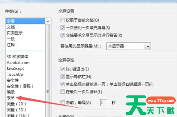 “首选项”窗口左侧是按功能分类的选项列表。在这个列表中,找到“表单”选项,并用鼠标左键单击它。此时,窗口右侧会显示与表单相关的设置内容。
