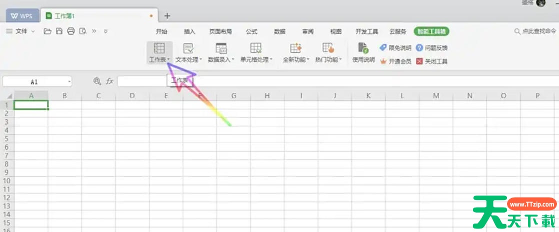 点击表格界面右上角的 「智能工具箱」 选项卡(若未显示,可检查是否在「特色功能」或「应用中心」中启用)。