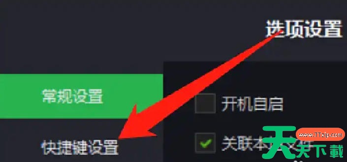 3、在 “选项设置” 弹框中,切换到 “快捷键设置” 版面。