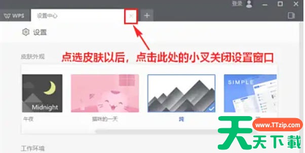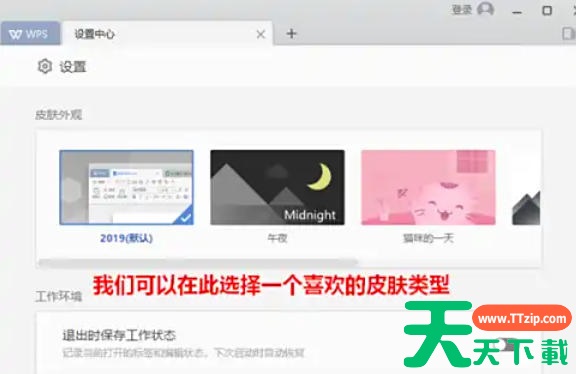 以上就是天天下载Ttzip为您整理下WPS Office 2019怎么换肤以及WPS Office 2019换肤的方法啦,希望能帮到您!