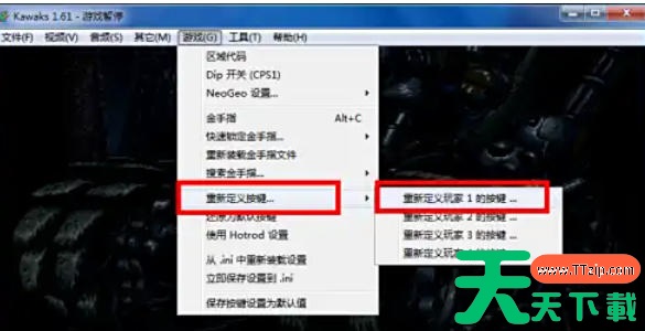 在游戏运行界面中,点击顶部菜单栏的 “游戏”。选择 “重新定义按键” → “重新定义玩家1的按键”(或玩家2,根据需求选择)。