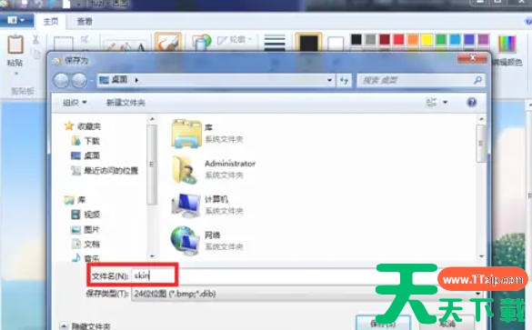 用画图工具新建图片 → 调整大小 → 另存为 24位BMP → 输入文件名 skin(系统自动补.bmp)。