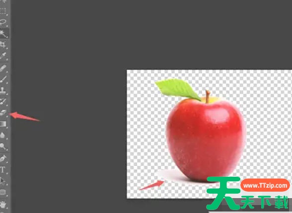 若苹果边缘有残留背景(如左下角),选择 橡皮擦工具(Eraser Tool)(快捷键 E):