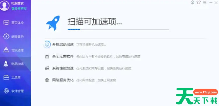 腾讯电脑管家是一款由腾讯公司官方推出的免费安全与管理软件,集电脑病毒查杀、系统清理优化、软件管理及网络安全防护于一体。产品依托腾讯安全云库及自研杀毒引擎,可智能拦截木马病毒、勒索软件及网络钓鱼攻击,全面保护系统安全。同时提供垃圾清理、启动项管理、漏洞修复等实用工具,有效提升电脑运行速度与稳定性。其特色在于深度整合腾讯账号体系与游戏加速功能,为QQ、微信用户及游戏玩家提供便捷优化服务,是一款轻巧、易用且贴合中国用户需求的全能电脑助手。接下来就让天天下载Ttzip为大家解答一下腾讯电脑管家怎么进行加速以及腾讯电脑管家进行加速的方法吧!