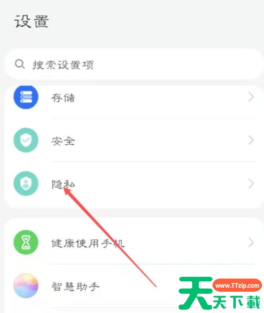 2、在设置菜单中向下滑动,找到并点击“隐私”选项。