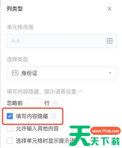 腾讯文档是一款可协作的云端Office工具,那么腾讯文档怎么设置只能看见自己填写的内容?腾讯文档设置只能看见自己填写内容的方法?下面就让天天下载Ttzip给大家解答下吧! 腾讯文档怎么设置只能看见自己填写的内容? 1、打开表格文档:进入需要设置的腾讯文档表格。 2、选择目标列:鼠标移动到需隐藏内容的列标题上,点击右侧的下拉箭头。 3、开启列设置:在下拉菜单中选择“列设置”。 4、启用隐藏功能:在列设置界面中,找到并勾选“填写内容隐藏”选项。 5、保存设置:关闭设置窗口,功能立即生效。 以上就是天天下载Ttzip为您整理的腾讯文档怎么设置只能看见自己填写的内容?腾讯文档设置只能看见自己填写内容的方法啦,希望能帮到您。 除特别注明外,本站所有文章均为 天天下载 原创,转载请注明出处来自 https://www.ttzip.com/202009.html