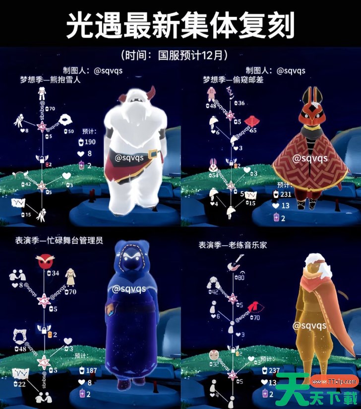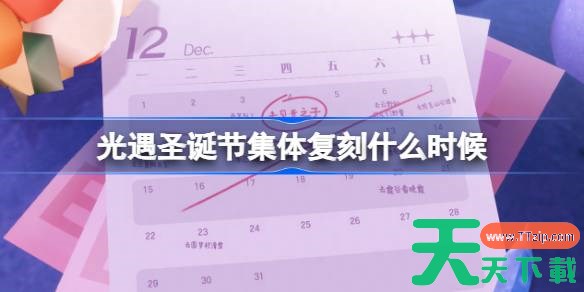光遇最近已经有集体复刻的消息,相信有不少的玩家都在等圣诞节的集体复刻,大家知道圣诞节集体复刻的具体信息吗?下面为大家带来的光遇圣诞节集体复刻时间2025,感兴趣的玩家们千万不要错过哦! 光遇圣诞节集体复刻什么时候 国服复刻时间 12月18日开启 兑换图 以上就是关于光遇集体复刻什么时候的全部内容了,希望能为各位玩家们带来帮助,想要了解更多游戏攻略及资讯请持续关注天天下载(ttzip.com)。 @天天软件站Ttzip 除特别注明外,本站所有文章均为 天天下载 原创,转载请注明出处来自 https://www.ttzip.com/202307.html