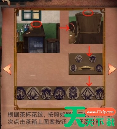 1.茶杯柜子机关调整如下,调整完了,就可以获取两个空茶杯:
