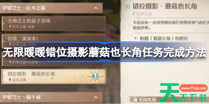 以上就是无限暖暖错位摄影蘑菇也长角任务完成方法的全部内容了,希望玩家可以顺利的知道怎么完成,更多精彩内容请关注天天下载(ttzip.com)。