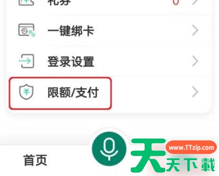 在中国农业银行应用我的窗口,打开【限额/支付】选项。