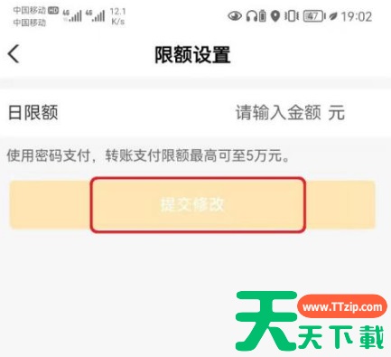 进入限额设置,输入日限额额度后,点击【提交修改】即可。