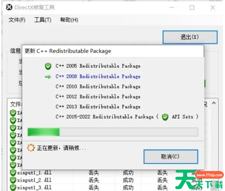 3、directx修复工具还具备有更新系统C++组件的功能。绝大多数的软件运行时需要C++的支持,且C++异常也会导致0xc000007b错误,因此该程序在检测和修复时会根据需要更新系统中的C++组件。