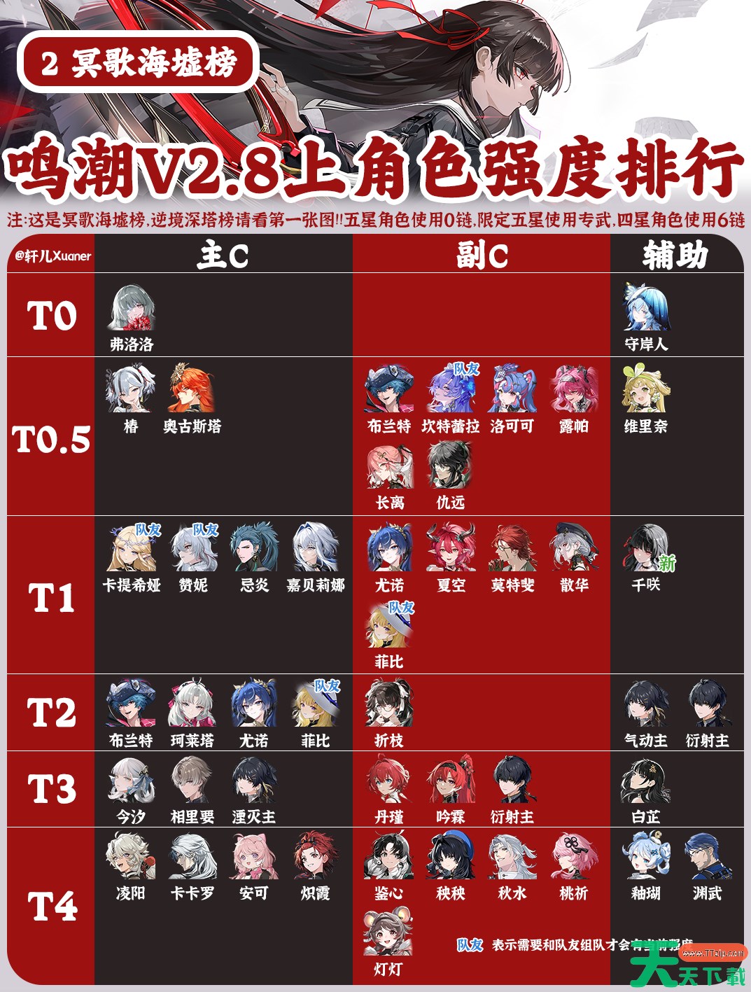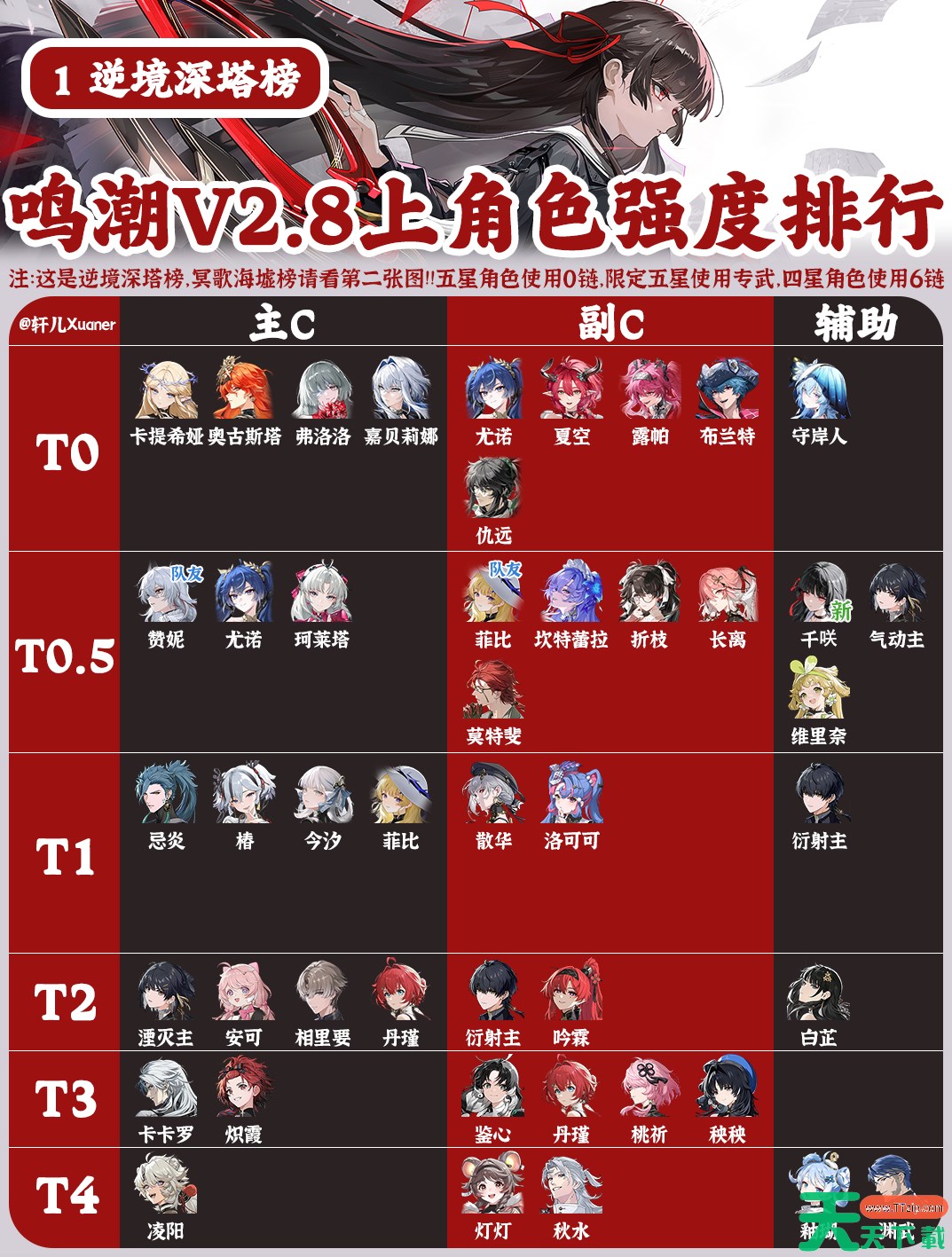 鸣潮目前已经是2.8上半版本,游戏中角色在逆境深塔以及冥歌海墟的表现都不一样,那么大家知道在2.8版本哪些角色最值得培养,哪些角色最强?那么接下来就跟随天天下载TTzip一起来了解一下鸣潮2.8角色强度榜吧。