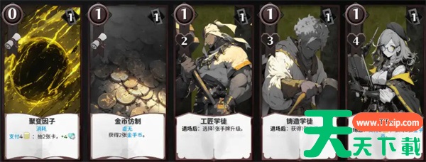 工匠学徒:退场后,选择1张手牌升级。大部分卡牌升级后的效果还是强上不少的,看自己符文卡和事件中遇到的升级多不多吧,综合考量。