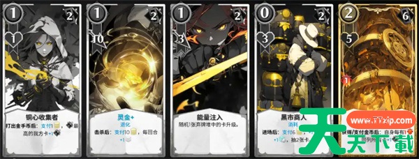 黑市商人:进场后,支付6金币,+1能量,+1下回合能量,抽2张卡。自身0能量3血站场,有能量有抽卡,6金币,性价比还是不错的,也是打出后才需要付钱。