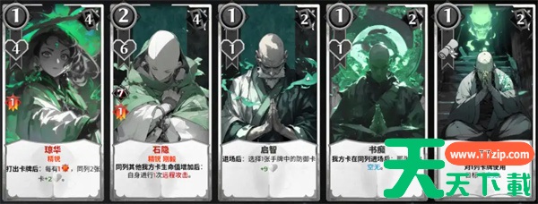 善因司录:进场后同列所有卡+6血量。如果已经有4张牌了,那么打出这张牌的收益就是1能量27血,性价比还是不错的。