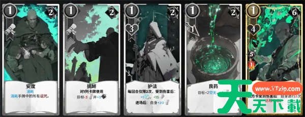 安度:消耗手牌中的所有诅咒。中后期的关卡中,会拿到很多诅咒,污染牌库,来之不易的删除次数用在诅咒上很浪费,轮回卡组中的卡牌除了能消耗诅咒,还能利用诅咒产生高额伤害,都是不错的选择。