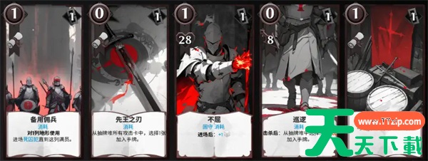 不屈:进场后+1能量,有固守(进场后:携带者+1在场时间)和消耗词条。普通卡牌只能站场1回合,不屈可以多站场1回合,本身1能量28血,身材也很优秀,搭配进场效果,除了会增加卡组厚度,基本没有缺点。