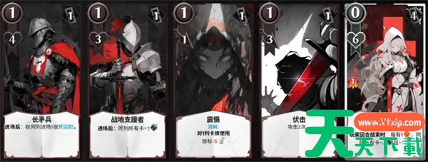 长矛兵:1能量4血量,同列召唤1张死囚犯,升级后可以召唤2张。另一种循环获得死囚犯的方式,以死囚犯铺场为主的构筑看到可以拿。