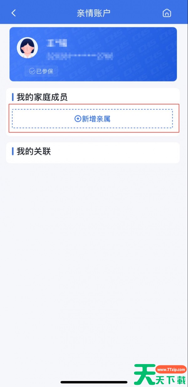 3进入“亲情账户”界面,点击“新增亲属”,按要求填写亲属信息。