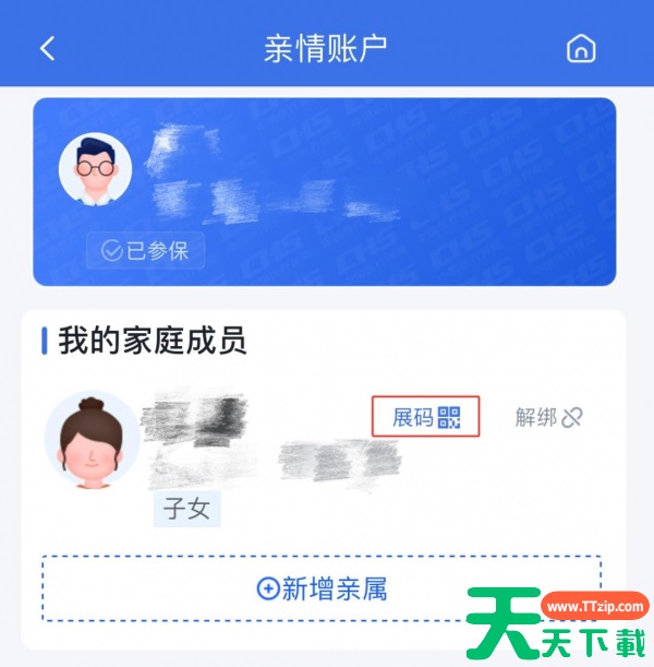 7点击“展码”即可显示家庭成员的医保电子凭证。