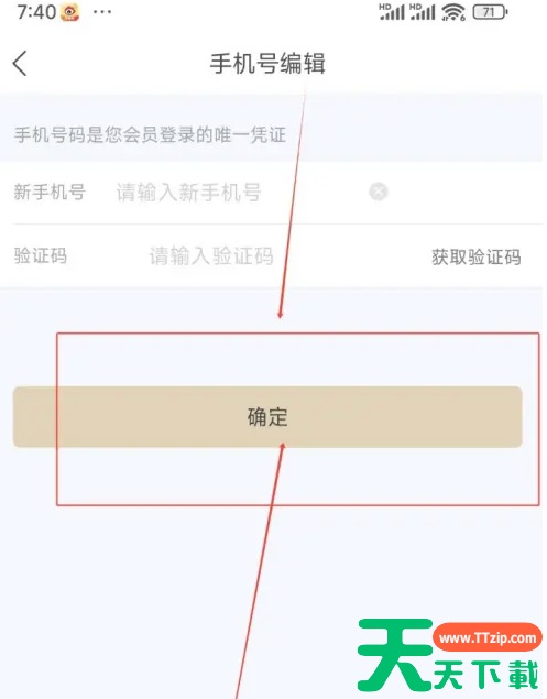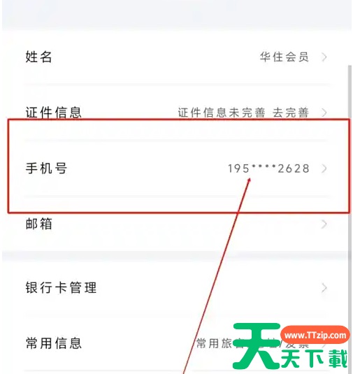 打开华住会app, 在主界面点击右下角的“会员”,在会员界面中点击左上角的“头像” 在我的账户界面中点击“手机号” 在验证界面中输入验证码后,点击“确定” 在跳转的新界面中输入新的手机号和验证码后,点击“确定”,即可完成更换绑定手机号的操作 @天天资源网TTzip 除特别注明外,本站所有文章均为 天天下载 原创,转载请注明出处来自 https://www.ttzip.com/202829.html