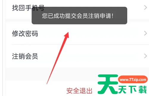 8、此时在出现的页面中可以看到提示消息,该注销申请已提交成功,等待审核通过即可完成注销。