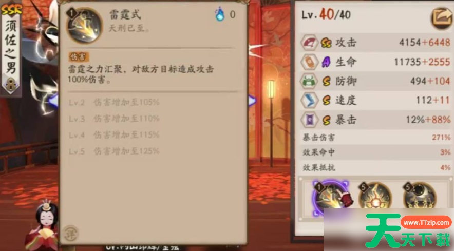 2、须佐之男一技能满级后对敌人的伤害增加至125%。