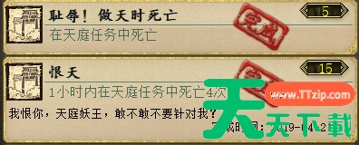 天庭任务里面,有个一小时内死亡4次的功绩+15;