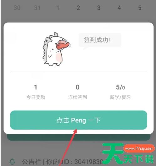 点击我的选项 进入墨墨记忆卡app界面,点击我的选项。 点击连续签到选项 进入墨墨记忆卡app我的界面,点击连续签到选项。 点击马上签到按钮 进入界面,点击马上签到按钮。 点击peng一下按钮 进入界面,签到成功,点击peng一下按钮。 @天天资源网TTzip 除特别注明外,本站所有文章均为 天天下载 原创,转载请注明出处来自 https://www.ttzip.com/202980.html