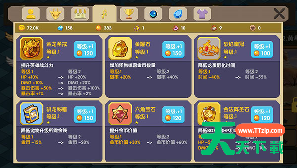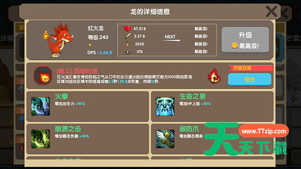 龙之契约是一款简单刺激又耐玩的点击放置手游,游戏虽然是放置类型的,但新手玩起来还是有些吃力的,不知道选择什龙,不知道怎么搭配圣物等等,今天天天下载Ttzip就给大家带来了龙之契约新手攻略,解决大家在前期的绝大部分问题,一起来看看吧! 龙之契约新手攻略 一、龙的选择买龙的时候可以看到龙的天赋和契约的,两个花钱龙(彩壳和幻蝶)真不想买的话也没事,方便挂机和增加离线收益(不想死氪还是买,但这个游戏,啧,开心就好)。其他龙都能肝来。