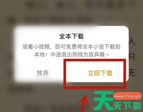 点击书架 在七猫小说首页点击进入书架选项。 点击全本下载 选择自己需要下载的小说进行打开,点击上方的全本下载选项。 点击立即下载 在全本下载小框中点击立即下载即可。 @天天资源网TTzip 除特别注明外,本站所有文章均为 天天下载 原创,转载请注明出处来自 https://www.ttzip.com/202997.html