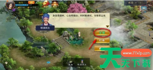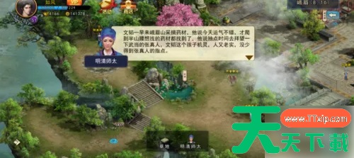 前往峨眉山场景8.16坐标点位置跟明清师太进行对话,选择【文韬】选项,这时明清师太会讲述文韬前往武当山拜望张真人的信息。