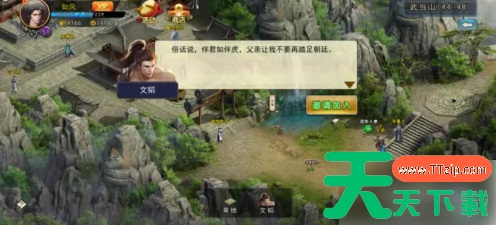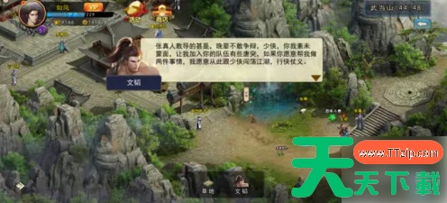 前往武当山场景的44.48坐标点位置跟文韬进行对话,选择【邀请加入】选项,这时文韬会提出需要帮他完成两件事情。