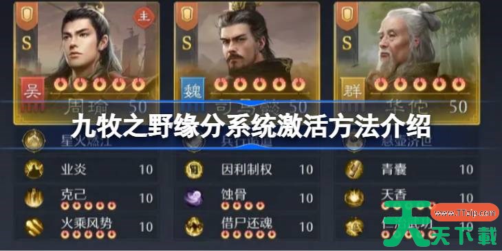 以上就是九牧之野缘分系统激活方法介绍的全部内容了,希望玩家可以顺利的知道怎么激活,更多精彩内容请关注天天下载(ttzip.com)。