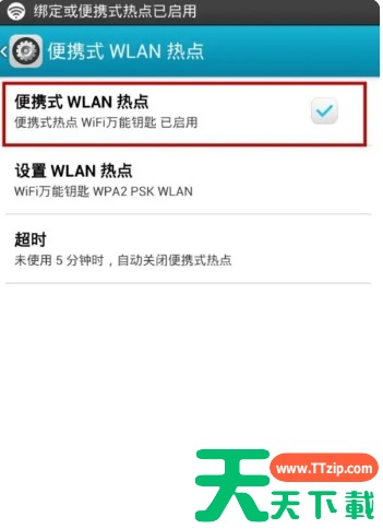 3、设置完成后保存并返回热点界面,点击开启“便携式WLAN热点”,使用电脑搜索并连接该热点。