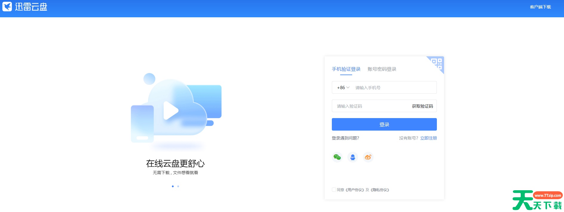 迅雷网盘网页版的官方地址是:https://pan.xunlei.com/login/