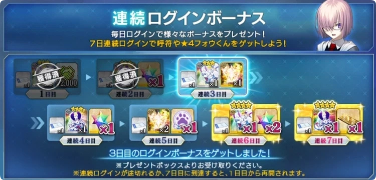 每年的固定奖励方面,今年没有太大变化,每周1轮的4个圣晶石+1个呼符,按52周计算,一年可以拿208个圣晶石,加上50天一次的30圣晶石,以及周常任务的圣晶片折算3个圣晶石,加起来一年大概是574个圣晶石。