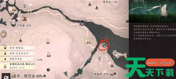 当我们喝完九种美酒后,按照任务指引,前往清河的【神仙渡西】,在这里我们会遇到狂澜入门长老【项顶花】,他会和我们来一场拼酒对决,获胜后就是狂澜的正式弟子了。