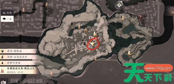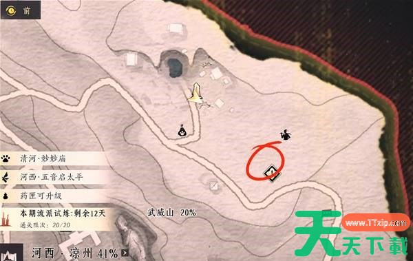 传送到凉州的【苦行所】,找到NPC佛手郎(下图红圈位置),用奇术摄星拿月,在NPC身上获取到1种美酒【满江红】